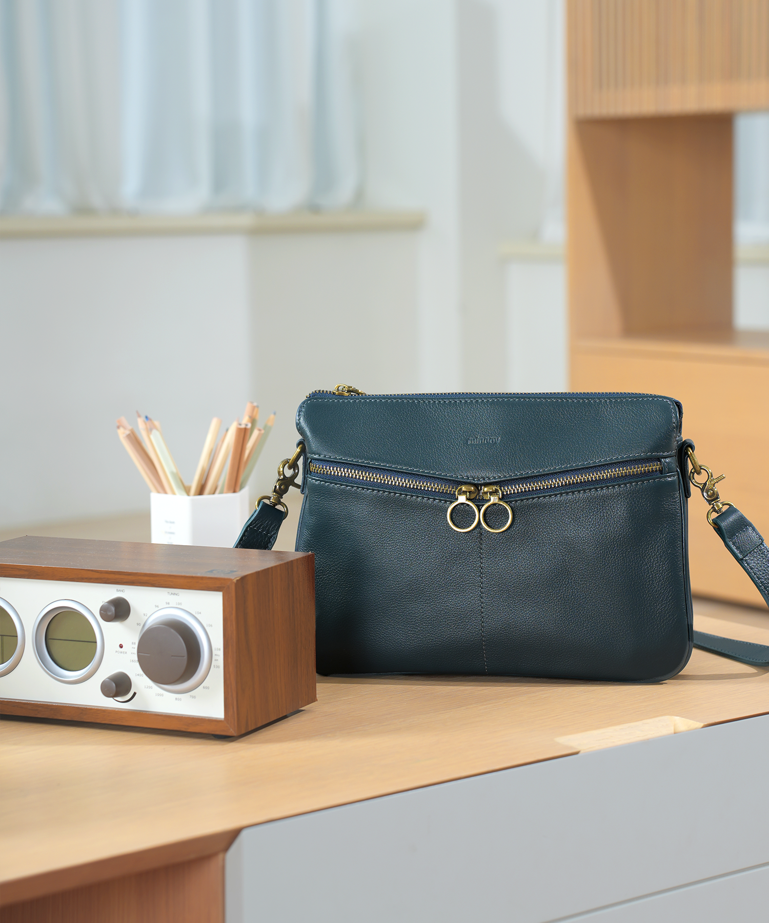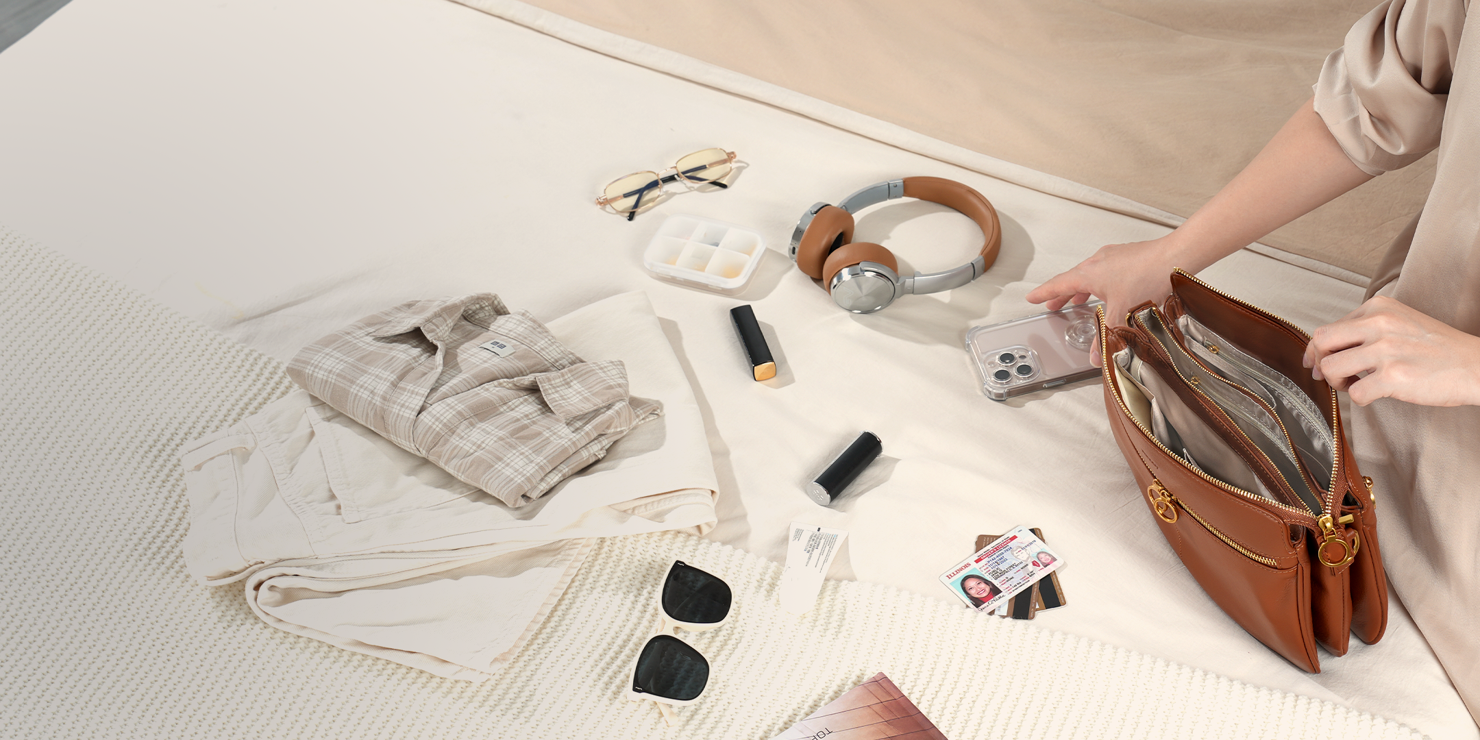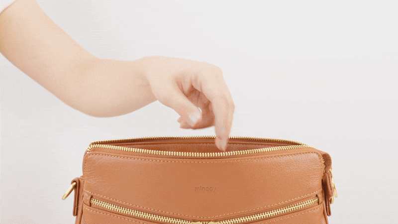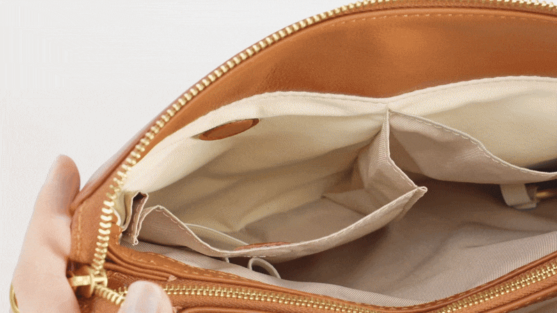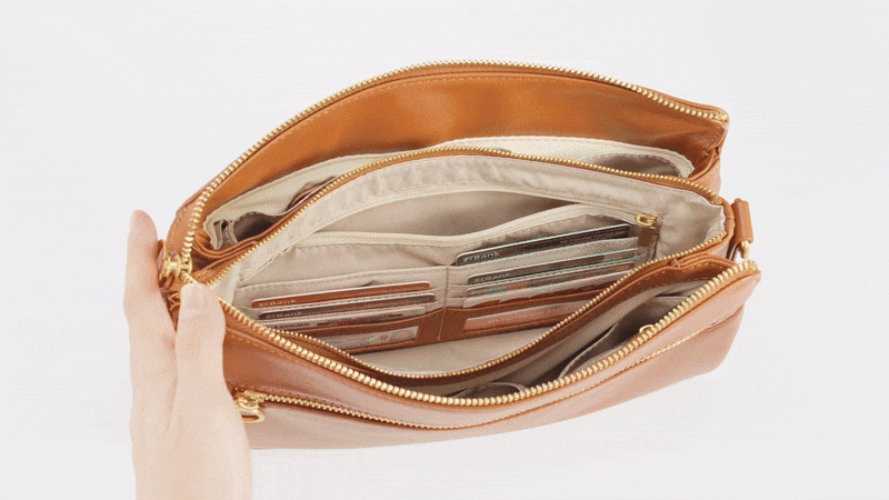 The built-in wallet has clearly divided compartments to keep your cash and cards organized, neat, and easily accessible—eliminating the need for a bulky wallet. Dual zippers and RFID protection ensure reliable security for your valuables and personal information.